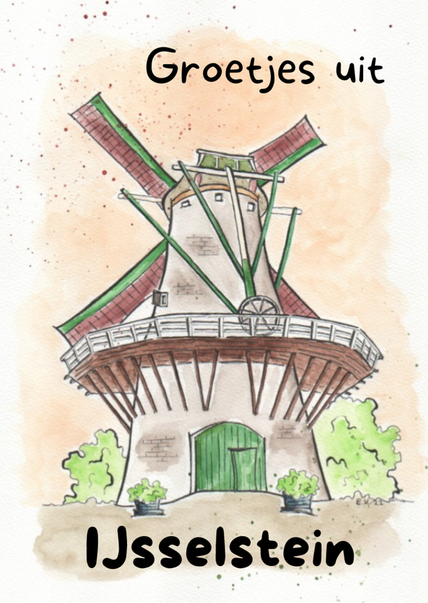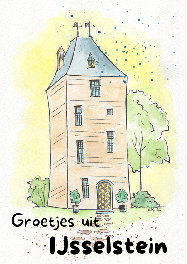 Set van 5 ansichtkaarten van IJsselstein. Uitgevoerd in tekenpen en aquarel.